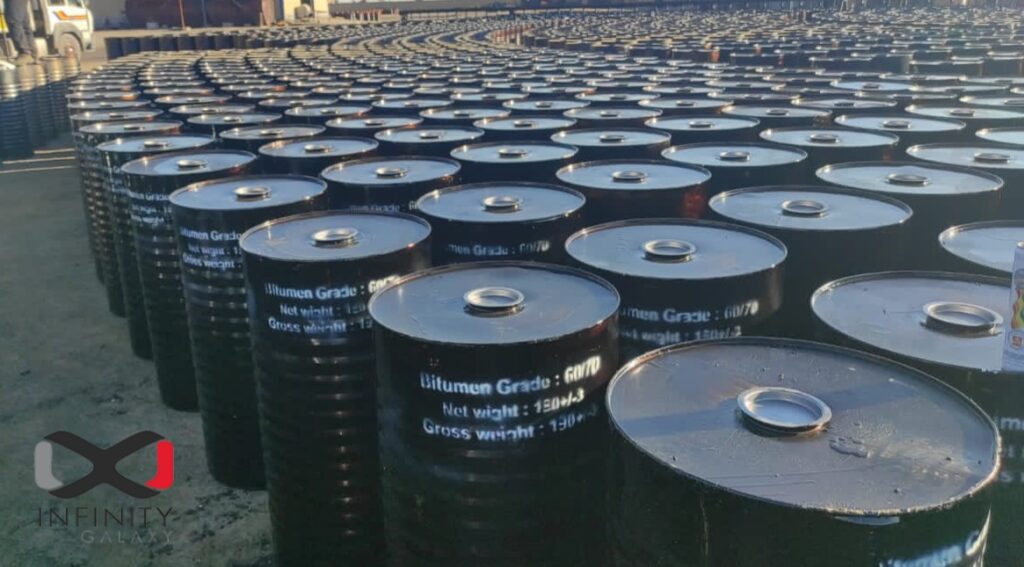 Guna imports and distributes the highest standard of bitumen with a new steel drum package. Moreover, it supplies 100 % pure road construction bitumen of various grades, to mention some 40/50, 60/70, 85/100, 120/150, 180/200 among others.The term bitumen refers to a substance produced through the distillation of crude oil. Bitumen is known for its waterproofing and adhesive properties and is commonly used in the construction industry, notably for roads and highways.